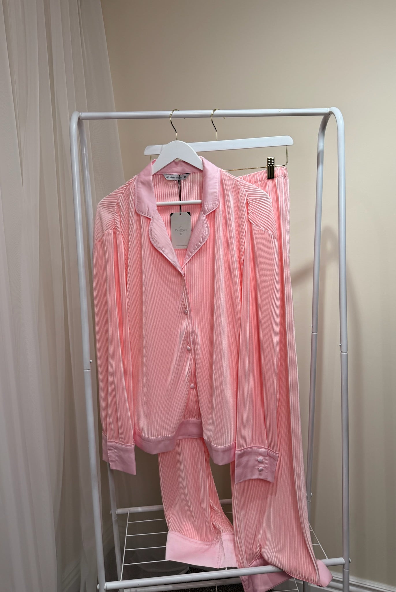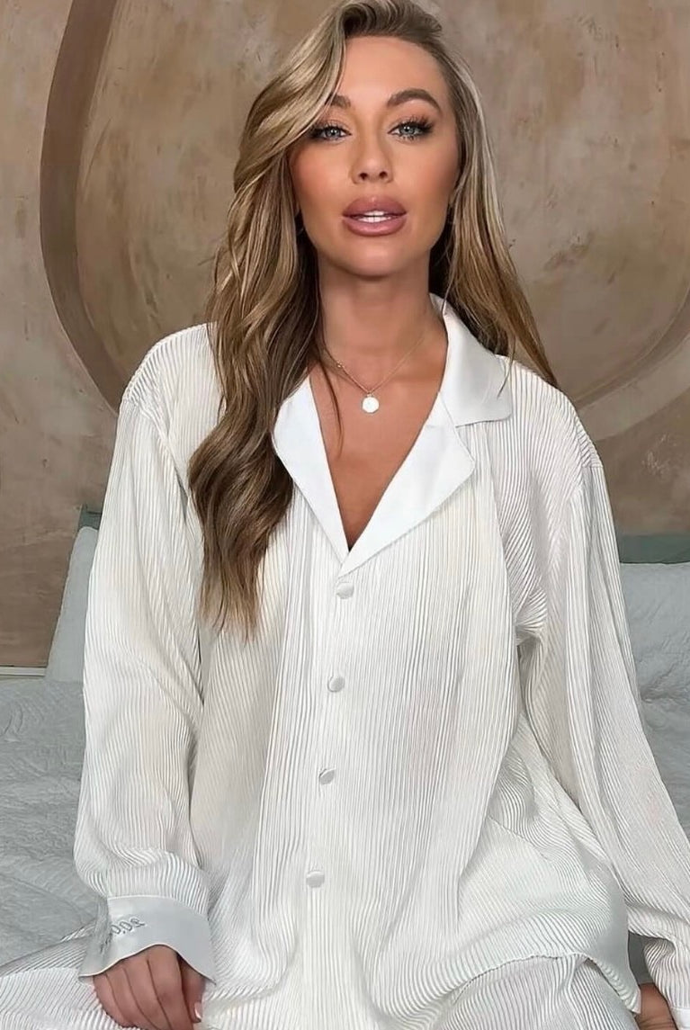 Wrap yourself in effortless elegance with our sell out Plissé Pyjamas. Crafted for comfort and sophistication, their soft pleated fabric drapes beautifully for a look that feels as good as it looks. Perfect for relaxed nights, lazy mornings, or thoughtful gifting — and even more special when personalised with your initials or name.