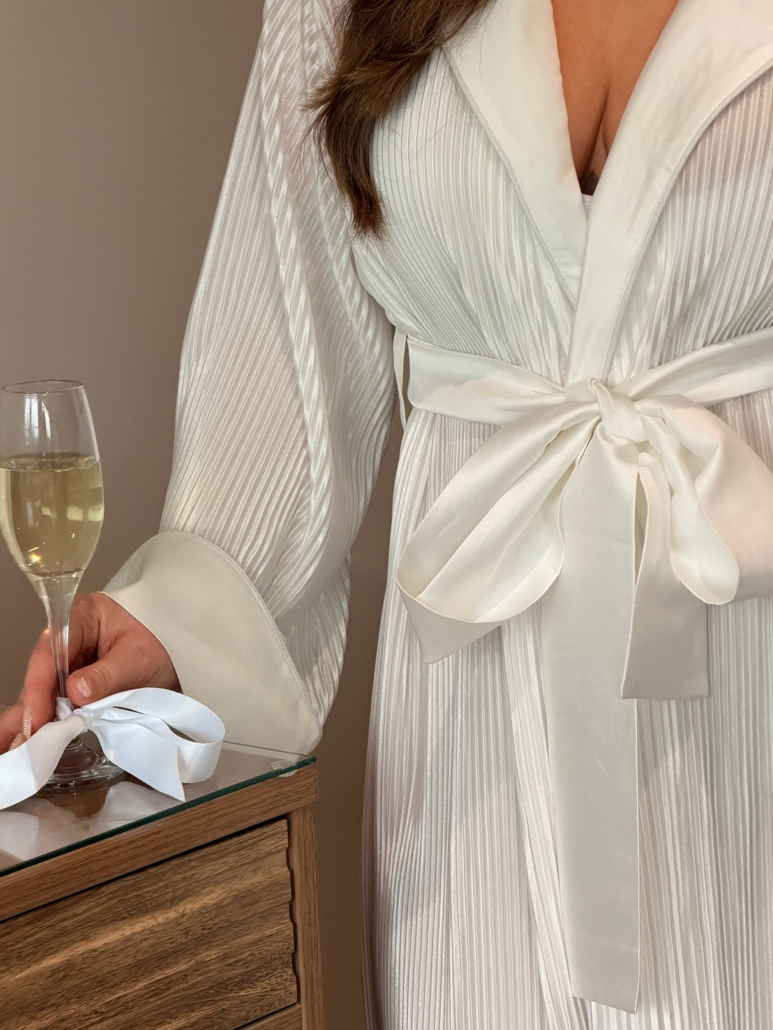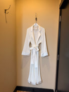 Effortlessly versatile, it can be layered over our plissé pyjamas or worn on its own with underwear for relaxed, elegant lounging. The robe can be personalised with embroidery, making it an ideal choice for brides, bridal parties, or those everyday moments that call for a little extra luxury.