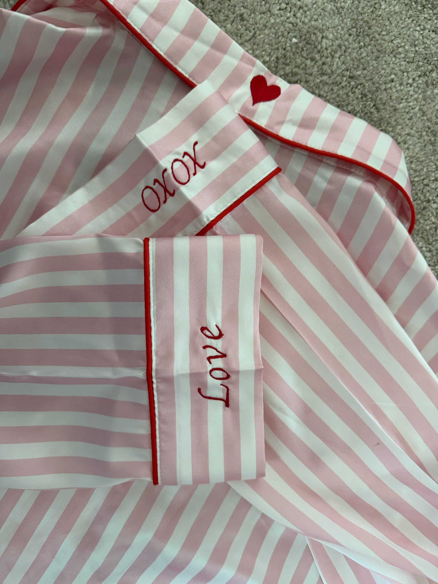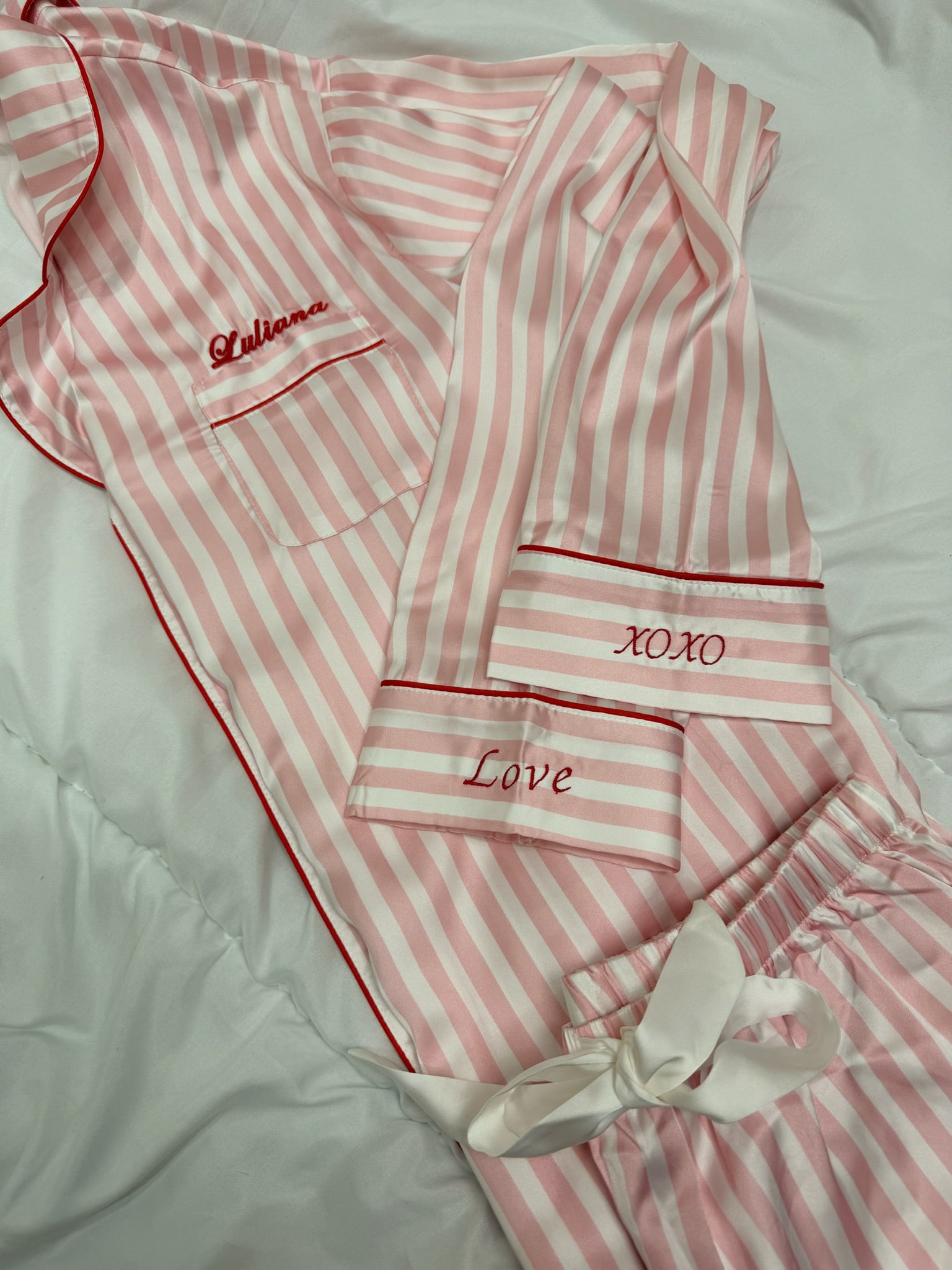 Limited edition Pink Candy Stripe Satin PJs — the ultimate Valentine’s treat. Soft, silky, and irresistibly romantic, these luxe satin pjs are perfect for cozy nights, self-love moments or gifting someone special. Fall in love with bedtime. 💕