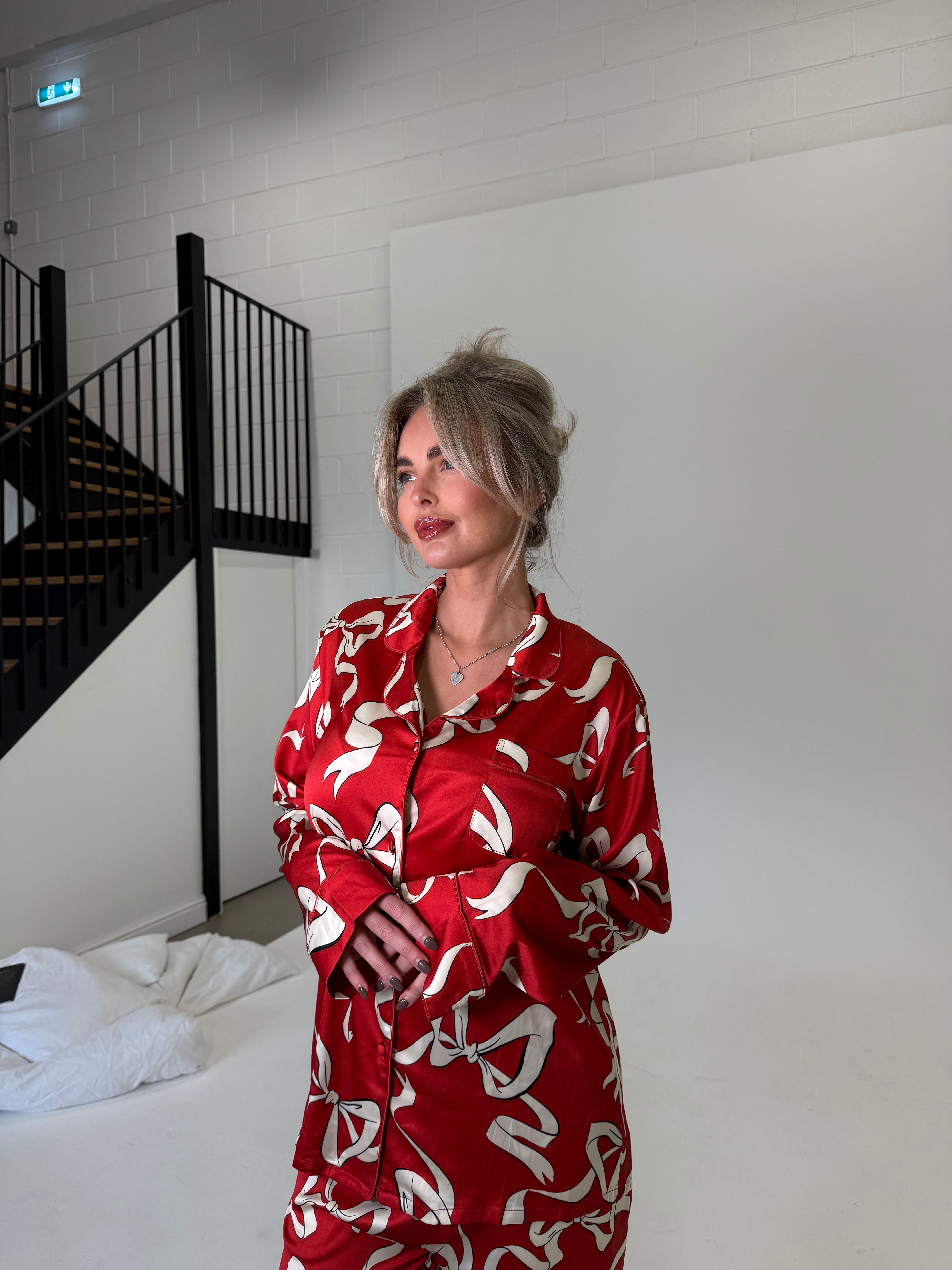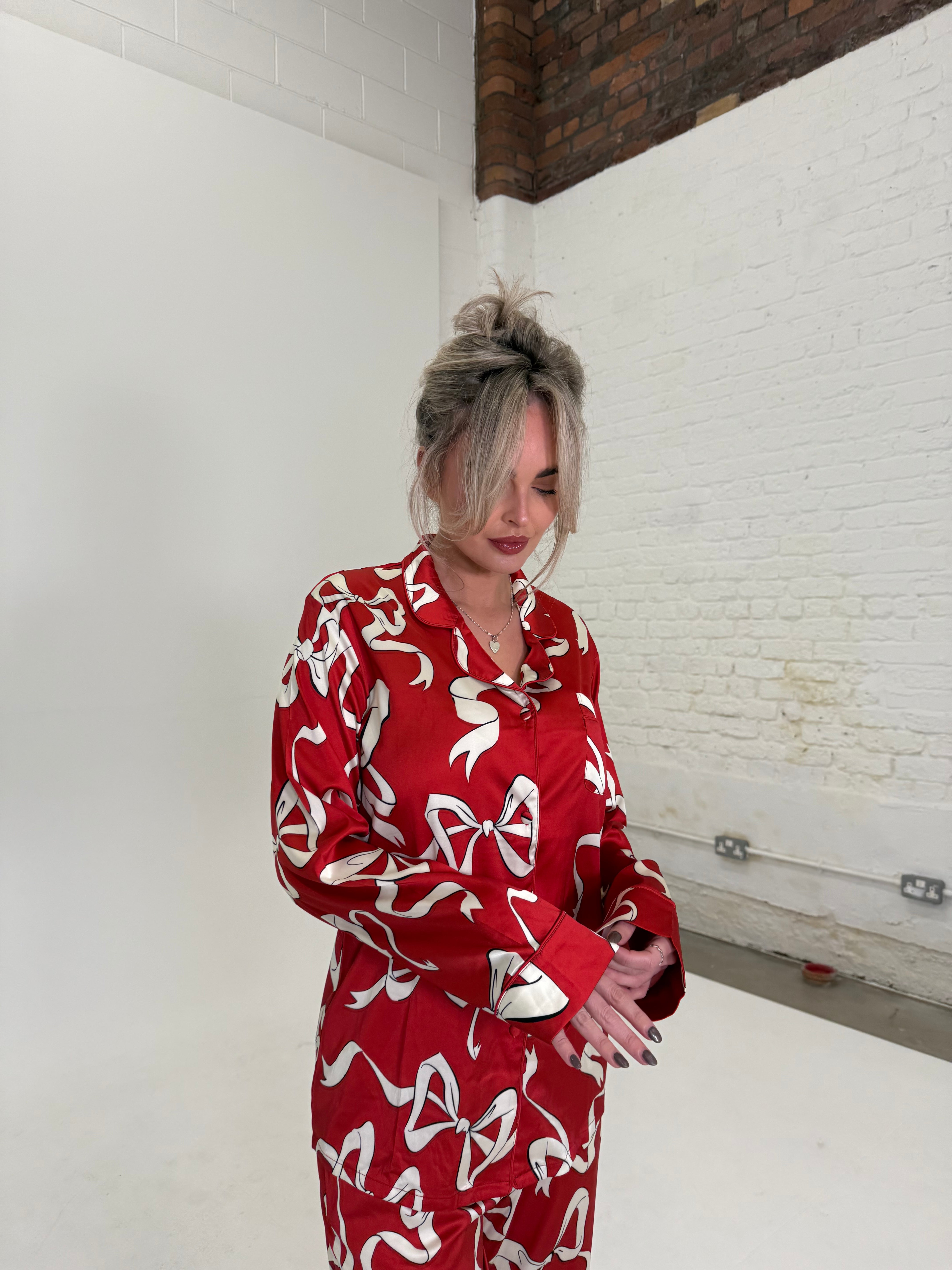 Luxury Satin Red Bow Christmas Pyjamas